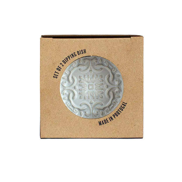 Pratos de Azeite em cerâmica grés decorada à mão com motivo de azulejo português em alto relevo.