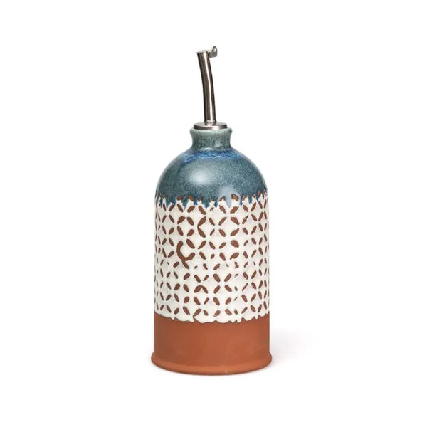 Galheteiro AROMA em terracota com capacidade de 600ml. Decorado à mão com vidrado reativo, o que confere a cada peça um acabamento único e cheio de personalidade. Devido à natureza artesanal do processo, podem ocorrer ligeiras variações de cor, tornando cada galheteiro verdadeiramente exclusivo. Resistente e seguro para uso diário. Feito em Portugal.