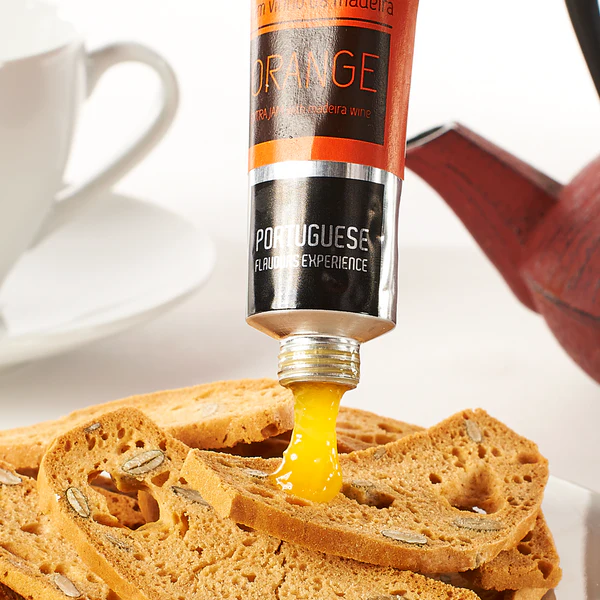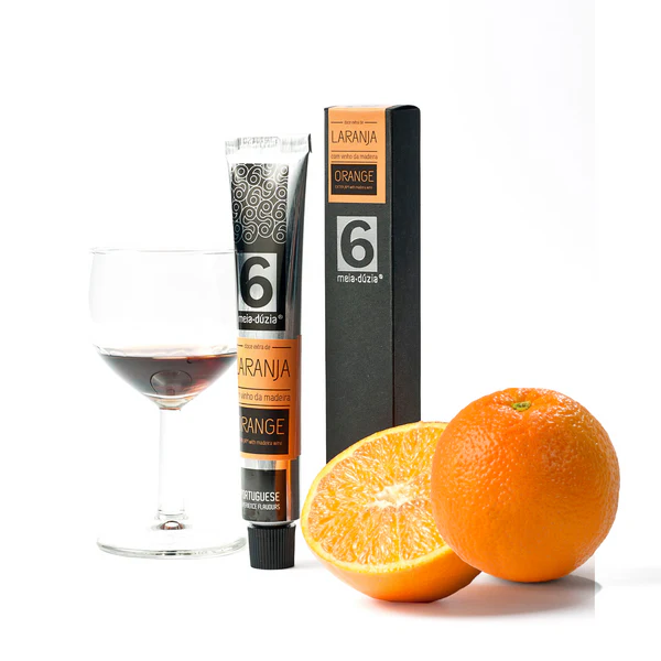 Doce de laranja da região do Algarve, fruto de sabor adocicado, com polpa suculenta, aromatizado com o vinho da Madeira Malvasia, um vinho licoroso doce, incorporado e muito frutado, de cor âmbar mais profunda, com paladar mais complexo a nozes, frutos secos, café e caramelo.