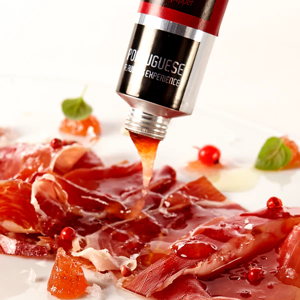 O Doce de Pera Rocha e Groselha com Cidreira e Pimenta Rosa é uma verdadeira celebração da inovação na doçaria portuguesa. A Pera Rocha do Oeste DOP, de origem exclusivamente nacional e reconhecida pela sua polpa firme, sumarenta e de sabor equilibrado, une-se à acidez marcante da groselha, criando uma base fresca e vibrante. A cidreira acrescenta um toque aromático delicado, doce e ligeiramente herbal, que intensifica a sensação de frescura. Já a pimenta rosa, com as suas bagas aromáticas e frutadas, dá um acabamento surpreendente, levemente resinoso e picante, transformando este doce numa experiência única e sofisticada.
